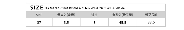 | 치수 | 355(225),36(230),365(235),37(240),375(245),38(250),385(255)/굽높이1CM | ||