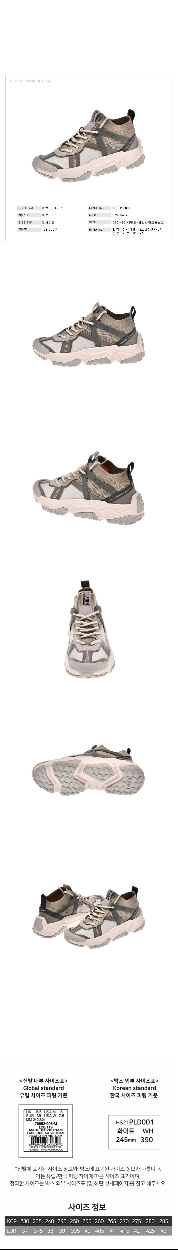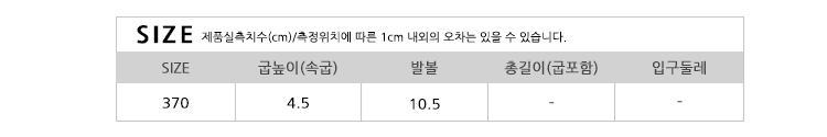 | 치수 | 370_230,375_235,380_240,390_245,395_250,400_255,405_260,410_265,415_270,420_275,425_280,430_285/굽높이4.5CM | ||