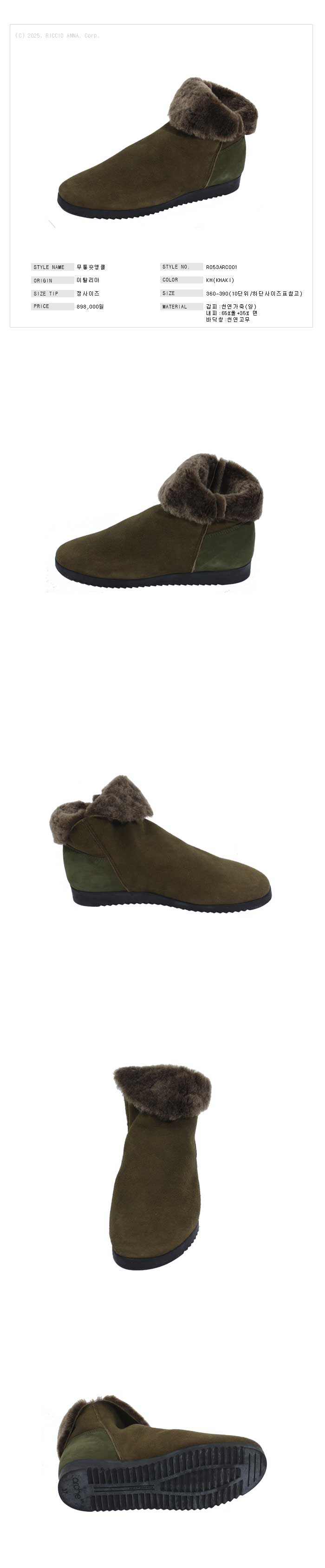 | 제품 소재 | 갑피:천연가죽(양)/내피:65%울+35% 면/바닥창:천연고무 | ||